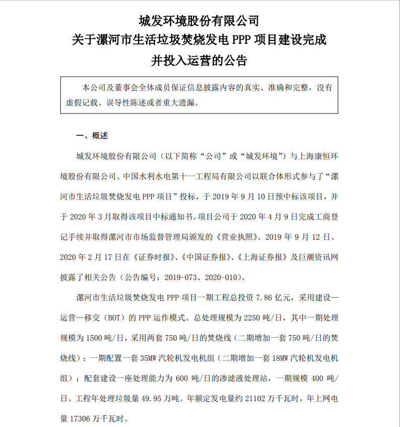 2021 年 11 月 10 日,漯河城發(fā)環(huán)保能源有限公司召開漯河市生活垃圾焚燒發(fā)電 項(xiàng)目啟動驗(yàn)收委員會首次會議,機(jī)組進(jìn)入整套啟動調(diào)試,#2 焚燒線于 11 月 24 日 15 點(diǎn) 30 分完成并汽操作。目前全部機(jī)組已完成“72+24”小時試運(yùn)行,設(shè)備 運(yùn)行穩(wěn)定,經(jīng)濟(jì)指標(biāo)良好...