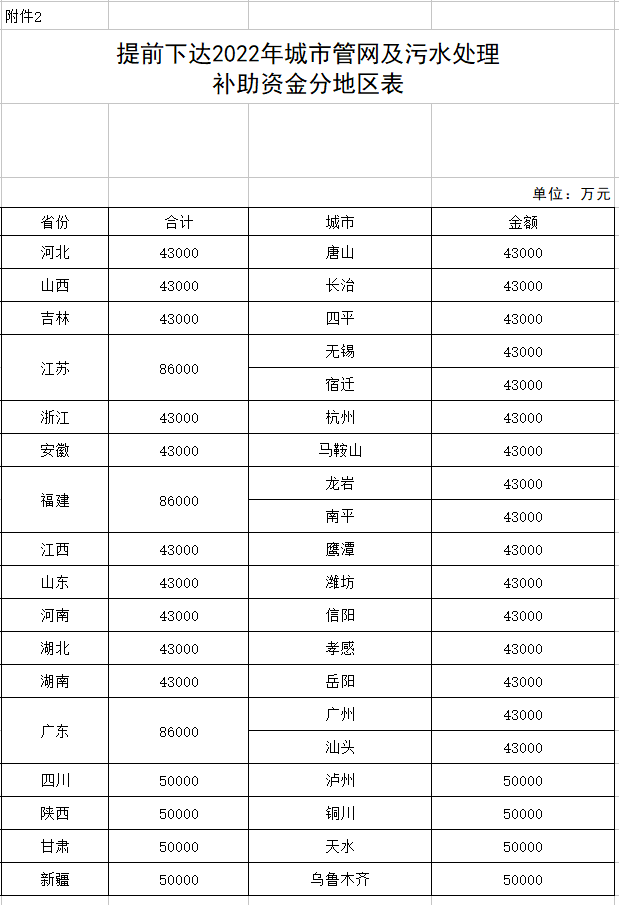 污水管網(wǎng)是城市縣域內(nèi)看不見的心脈建設(shè),做好污水管網(wǎng)工作,就是在為城市強(qiáng)健體魄,增強(qiáng)城市污水處理能力,構(gòu)建起區(qū)域水生態(tài)嚴(yán)密網(wǎng)絡(luò)。 此前,《財政部關(guān)于提前下達(dá)2022年城市管網(wǎng)及污水處理補(bǔ)助資金預(yù)算的通知》發(fā)布,共發(fā)放88.8億,涉及17個省份20個城市,其中江蘇、福建、廣東補(bǔ)助金8.6億,將完成省內(nèi)兩...