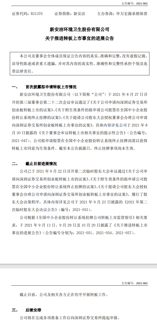 對于環(huán)保產(chǎn)業(yè)來說,資本市場向來是重要的融資工具,因此備受大家關(guān)注。 10月30日,證監(jiān)會(huì)發(fā)布信息,明確了北京證券交易所基礎(chǔ)制度的生效日期。這意味著,北交所將于2021年11月15日(今日)正式開市。 屆時(shí),新三板市場精選的超過68家公司將全部平移進(jìn)入北交所。 其中,重慶新安潔環(huán)境衛(wèi)生股份有限公司(下...