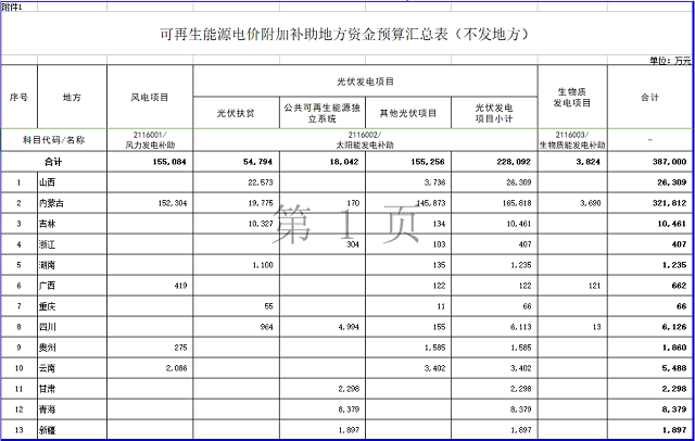 財(cái)政部關(guān)于提前下達(dá)2022年可再生能源電價(jià)附加補(bǔ)助地方資金預(yù)算的通知 財(cái)建〔2021〕346號 山西、內(nèi)蒙古、吉林、浙江、湖南、廣西、重慶、四川、貴州、云南、甘肅、青海、新疆等省(自治區(qū)、直轄市)財(cái)政廳(局): 根據(jù)《財(cái)政部 國家發(fā)展改革委 國家能源局關(guān)于印發(fā)<可再生能源電價(jià)附加資金管理辦法&...