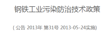 鋼鐵工業(yè)污染防治技術(shù)政策( 公告 2013年 第31號(hào) 2013-05-24實(shí)施) 一、總則 (一)為貫徹《中華人民共和國(guó)環(huán)境保護(hù)法》等法律法規(guī),防治環(huán)境污染,保障生態(tài)安全和人體健康,促進(jìn)鋼鐵工業(yè)結(jié)構(gòu)優(yōu)化升級(jí),推進(jìn)行業(yè)可持續(xù)發(fā)展,制定本技術(shù)政策。 (二)本技術(shù)政策為指導(dǎo)性文件,供各有關(guān)單位在環(huán)境保護(hù)...