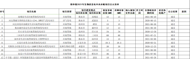河北省擬申報2021年生物質(zhì)發(fā)電中央補(bǔ)貼項(xiàng)目清單公示 按照國家發(fā)展改革委、財(cái)政部、國家能源局聯(lián)合印發(fā)的《2021年生物質(zhì)發(fā)電項(xiàng)目建設(shè)工作方案》(發(fā)改能源【2021】1190號)文件及有關(guān)事項(xiàng)公告要求,經(jīng)各市能源主管部門、財(cái)政部門聯(lián)合申報,我們對項(xiàng)目申報條件、項(xiàng)目申報信息、地方分擔(dān)資金承諾情況進(jìn)行了審...