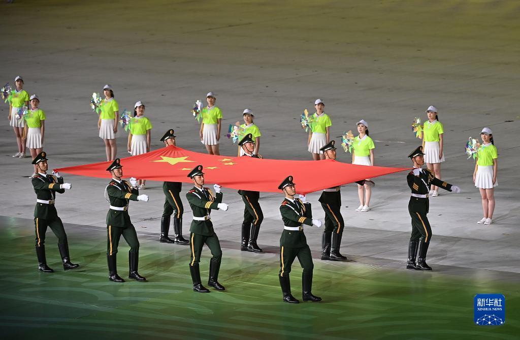 第十四屆全國運(yùn)動(dòng)會(huì)開幕式在西安奧體中心體育場(chǎng)舉行。 9月15日,旗手護(hù)送中華人民共和國國旗入場(chǎng)。當(dāng)日,第十四屆全國運(yùn)動(dòng)會(huì)開幕式在西安奧體中心體育場(chǎng)舉行。新華社記者 孫非 攝 這是9月15日拍攝的開幕式前的西安奧體中心體育館外景。當(dāng)日,第十四屆全國運(yùn)動(dòng)會(huì)開幕式在西安奧體中心體育場(chǎng)舉行。新華社記者 王曦...
