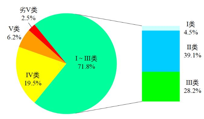 生態(tài)環(huán)境部今日向媒體通報了2021年7月和1-7月全國地表水、環(huán)境空氣質(zhì)量狀況。 一、地表水 (一)總體情況 7月,3641個國家地表水考核斷面中,水質(zhì)優(yōu)良(Ⅰ~Ⅲ類)斷面比例為71.8%,同比下降1.4個百分點;劣Ⅴ類斷面比例為2.5%,同比下降1.4個百分點。主要污染指標為高錳酸鹽指數(shù)、化學需氧...