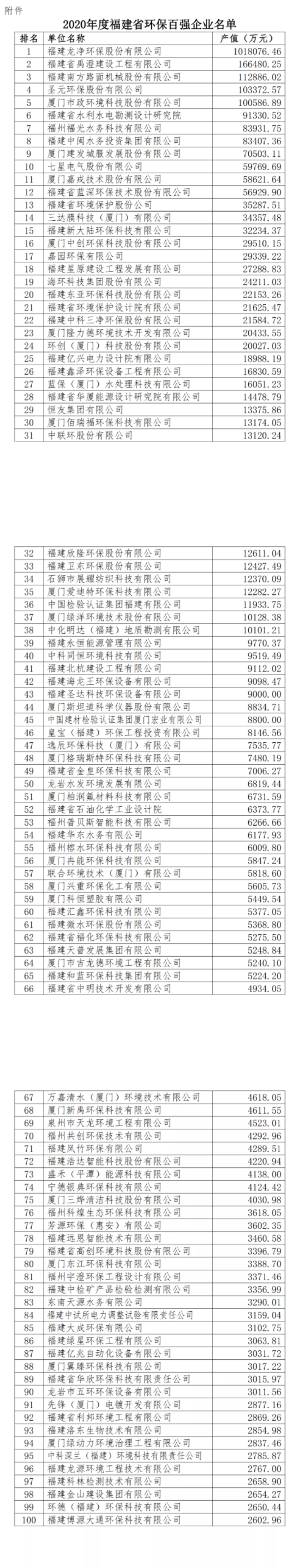 關(guān)于發(fā)布2020年度福建省環(huán)保產(chǎn)業(yè)百強(qiáng)榜的通知各會(huì)員單位: 2021年,我會(huì)配合中環(huán)協(xié)開展了2020年度全國環(huán)保產(chǎn)業(yè)重點(diǎn)企業(yè)基本情況調(diào)查工作,調(diào)查內(nèi)容包括企業(yè)的基本情況、環(huán)境保護(hù)產(chǎn)品生產(chǎn)經(jīng)營情況、環(huán)境服務(wù)業(yè)經(jīng)營等情況,得到了會(huì)員單位的大力支持和積極參與。 根據(jù)2020年度全國環(huán)保產(chǎn)業(yè)重點(diǎn)企業(yè)基本情況...