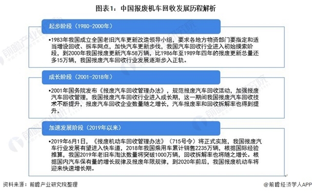 行業(yè)主要上市公司:華宏科技(002645)、天奇股份(002009)、格林美(002340)、浙商中拓(000906)、杭鋼股份(600126)等。 本文核心數(shù)據(jù):報(bào)廢機(jī)車回收市場發(fā)展規(guī)模和未來市場規(guī)模預(yù)測 1、目前正處于加速發(fā)展階段 報(bào)廢汽車是指達(dá)到國家報(bào)廢標(biāo)準(zhǔn)或者雖然未達(dá)到國家報(bào)廢標(biāo)準(zhǔn),但發(fā)動(dòng)機(jī)...