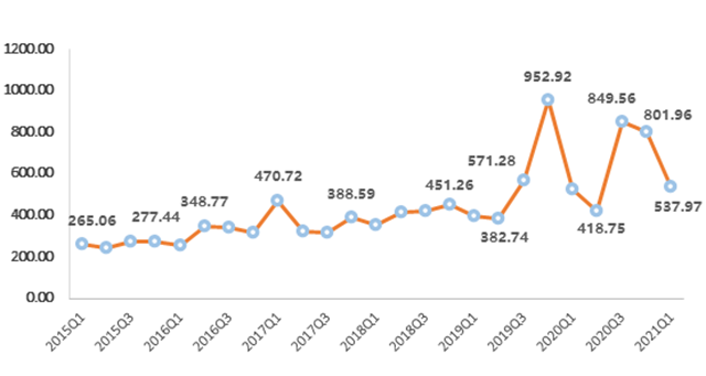 一、浙江省排污權(quán)交易指數(shù)分析 今年以來,浙江省排污權(quán)交易指數(shù)呈下行態(tài)勢(shì)。2021年第一季度,浙江省排污權(quán)交易指數(shù)延續(xù)上季度跌勢(shì),快速下跌,指數(shù)收?qǐng)?bào)于537.97點(diǎn),環(huán)比下跌32.92%,同比上升1.98%。 圖 1 浙江省排污權(quán)交易指數(shù) 四項(xiàng)排污權(quán)指標(biāo):化學(xué)需氧量收?qǐng)?bào)于380.31點(diǎn)(對(duì)應(yīng)價(jià)格152...