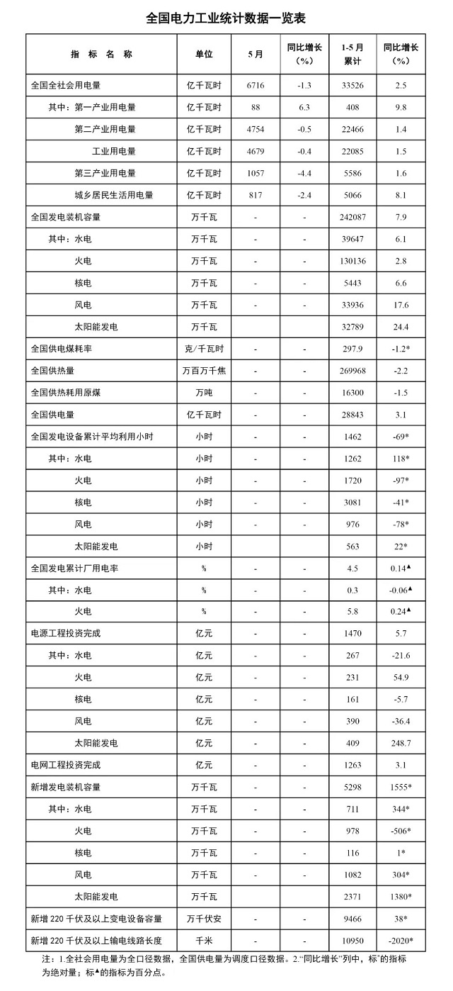 6月16日,國家能源局發(fā)布1-5月份全國電力工業(yè)統(tǒng)計(jì)數(shù)據(jù)。截至5月底,全國發(fā)電裝機(jī)容量約24.2億千瓦,同比增長7.9%。其中,風(fēng)電裝機(jī)容量約3.4億千瓦,同比增長17.6%;太陽能發(fā)電裝機(jī)容量約3.3億千瓦,同比增長24.4%。 1-5月份,全國發(fā)電設(shè)備累計(jì)平均利用1462小時(shí),比上年同期減少69...