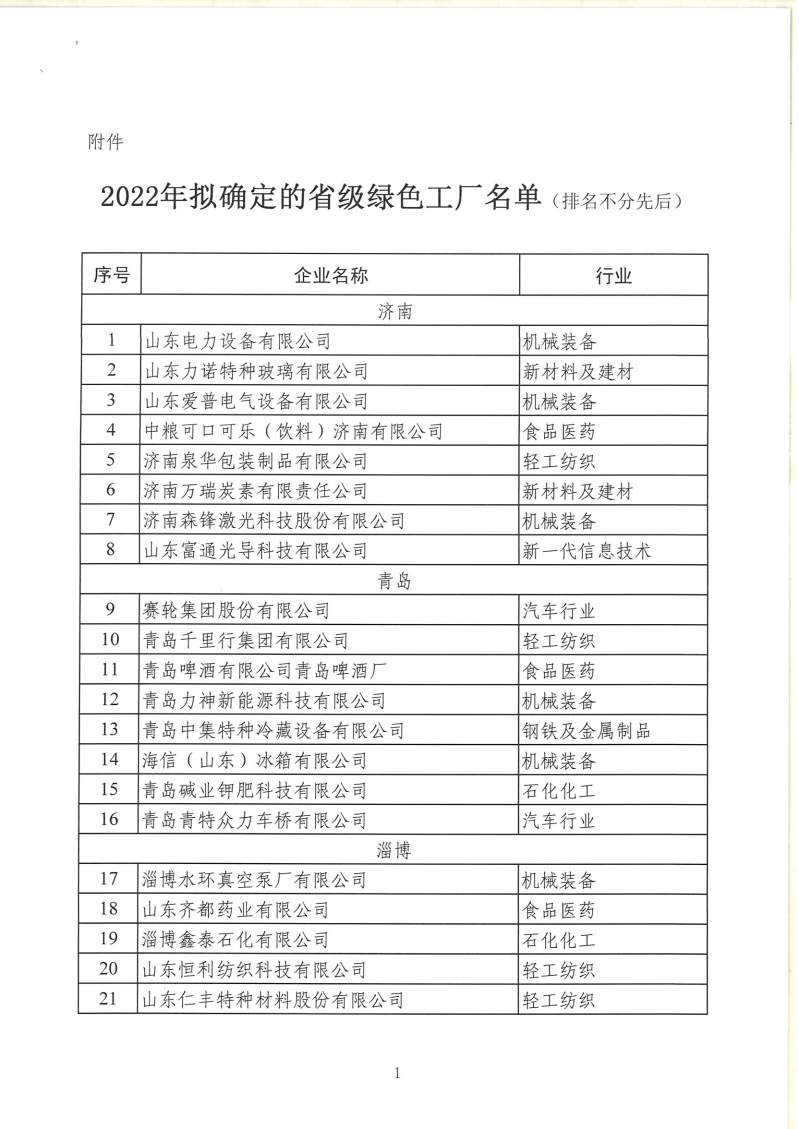 山東省工業(yè)和信息化廳關(guān)于2022年省級綠色工廠名單的公示 為加快推進我省綠色制造體系建設(shè),省工業(yè)和信息化廳組織開展了2022年省級綠色工廠推薦工作。經(jīng)企業(yè)申報、各市推薦、專家評審論證等程序,擬確定117家企業(yè)為省級綠色工廠,現(xiàn)將企業(yè)名單(見附件)予以公示。 公示期為:2022年6月7日—...