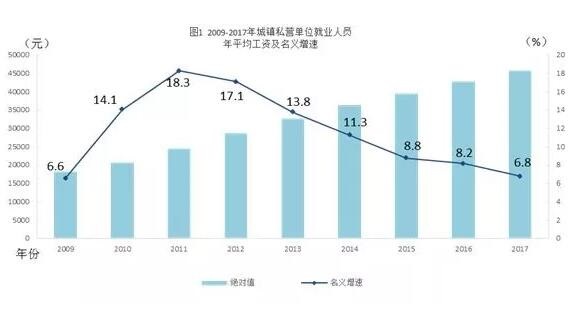 2018年5月15日,國家統(tǒng)計局發(fā)布了2017年主要數(shù)據(jù)。2017年就業(yè)人員年平均工資為45761元,與2016年的42833元相比,增加了2928元,同比名義增長6.8%,增速比2016年回落1.4個百分點。扣除物價因素,2017年全國城鎮(zhèn)私營單位就業(yè)人員年平均工資實際增長5.0%。分行業(yè)門類看,...