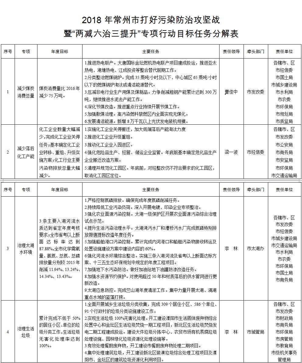 《2018年市打好攻堅戰(zhàn)暨“兩減六治三提升”專項行動工作方案》于日前印發(fā),根據(jù)方案,2018年,市區(qū)PM2.5年均濃度降到47微克/立方米,空氣質(zhì)量優(yōu)良天數(shù)比例達(dá)到69.7%。省考斷面水質(zhì)優(yōu)Ⅲ類比例達(dá)到42.4%以上,無劣Ⅴ類斷面。全市土壤總體保持穩(wěn)定,保障農(nóng)用地和建設(shè)用地土壤環(huán)境安全。全市二氧化硫...