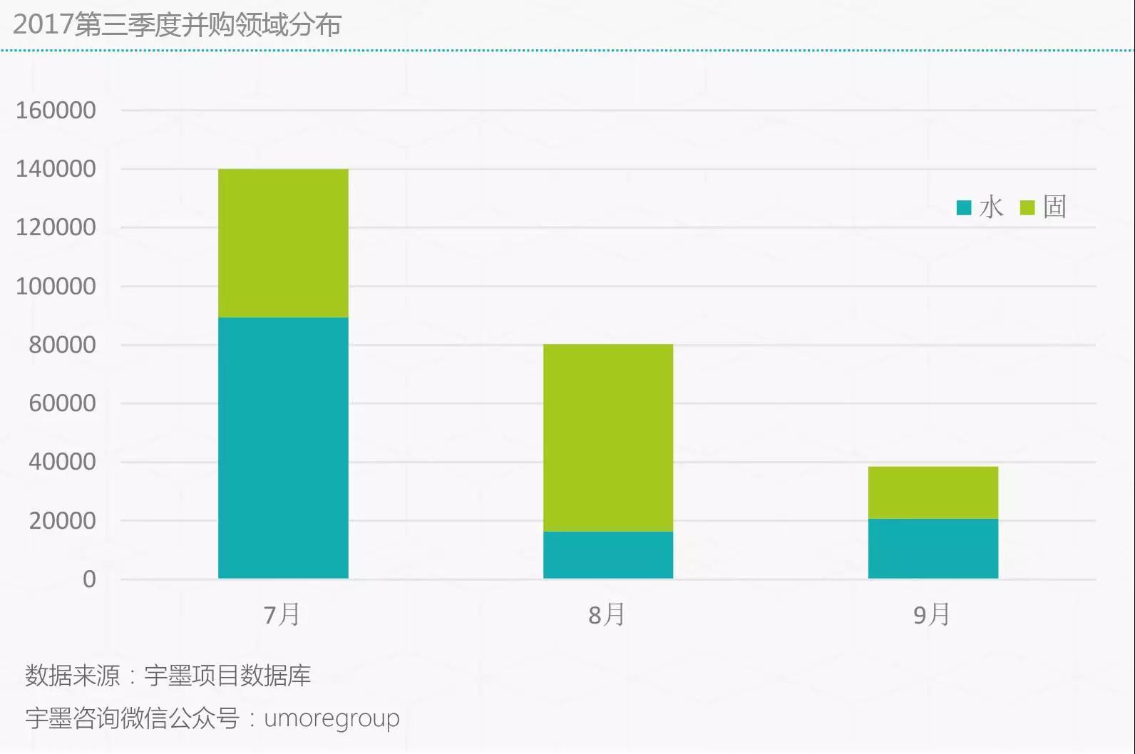 本文旨在用幾組數(shù)據(jù)對過去三個月的并購市場做一個簡單的回顧,作為讀者判斷下半年趨勢的參考。持續(xù)整合國內(nèi)環(huán)保并購市場的主流依然是水處理與,但是2017年第三季度,水處理領(lǐng)域不管在數(shù)目還是涉及金額方面都趨于低迷。相比而言,固廢處置已然成為當(dāng)前并購市場穩(wěn)定而強勁的組成部分。原因在前兩個月的地圖分析得非常清楚...
