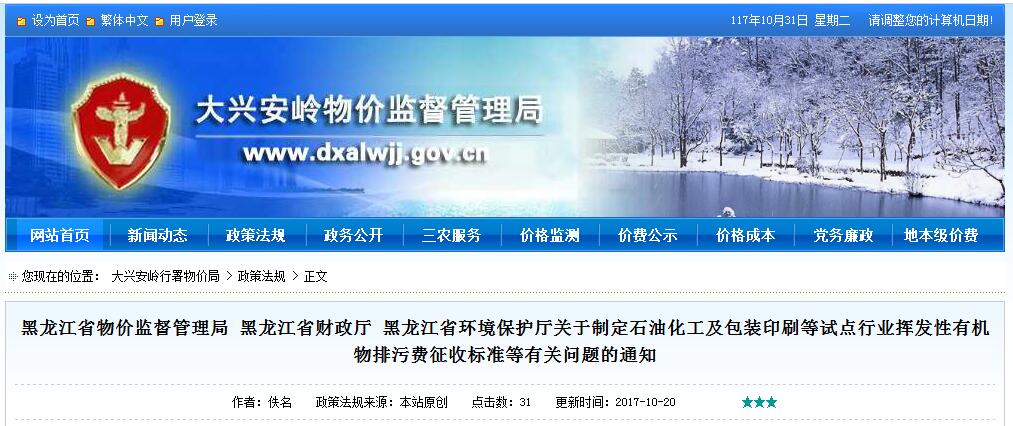 日前,省物價監(jiān)督管理局、黑龍江省財政廳、黑龍江省環(huán)境保護廳聯(lián)合印發(fā)關(guān)于制定石油化工及包裝印刷等試點行業(yè)排污費征收標(biāo)準(zhǔn)等有關(guān)問題的通知。黑龍江省石油化工、包裝印刷等試點行業(yè)征收標(biāo)準(zhǔn)與二氧化硫、氮氧化物排污費征收標(biāo)準(zhǔn)相同,即:每污染當(dāng)量1.2元。自2017年11月1日起執(zhí)行。全文如下:黑龍江省物價監(jiān)督管...