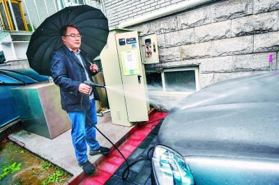 昨天下午,在北京市水科學(xué)技術(shù)研究院院內(nèi),研究人員正在演示自助的使用。(鄧偉攝)收集屋頂雨水,經(jīng)過(guò)凈化后暫時(shí)儲(chǔ)存,并利用太陽(yáng)能帶動(dòng)水泵洗車(chē)。這是由北京市水科學(xué)技術(shù)研究院自主研發(fā)的一項(xiàng)“黑科技”——自助雨水洗車(chē)機(jī)。目前,已有多臺(tái)設(shè)備在本市學(xué)校、醫(yī)院試點(diǎn)安裝。昨天秋雨綿綿,記者來(lái)到位于車(chē)公莊西路的北京市水...