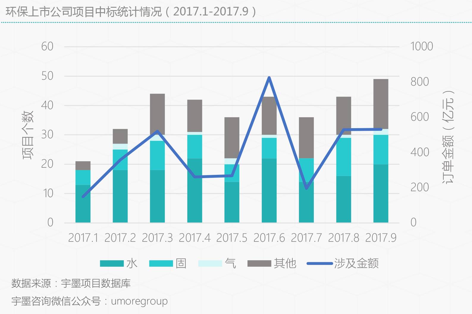 據(jù)宇墨咨詢(xún)不完全統(tǒng)計(jì),9月份共計(jì)中標(biāo)了48個(gè)項(xiàng)目(不包含預(yù)中標(biāo)項(xiàng)目),涉及總金額531.58億元。其中已中標(biāo)項(xiàng)目中包含20個(gè)水處理類(lèi)項(xiàng)目,10個(gè)固廢處置類(lèi)項(xiàng)目,2個(gè)類(lèi)項(xiàng)目以及17個(gè)其他類(lèi)項(xiàng)目,其中本月其他類(lèi)項(xiàng)目涉及領(lǐng)域較為廣泛,包含濕地治理、海綿城市以及城市綠化和環(huán)境修復(fù)相結(jié)合的生態(tài)綜合治理類(lèi)項(xiàng)目。...