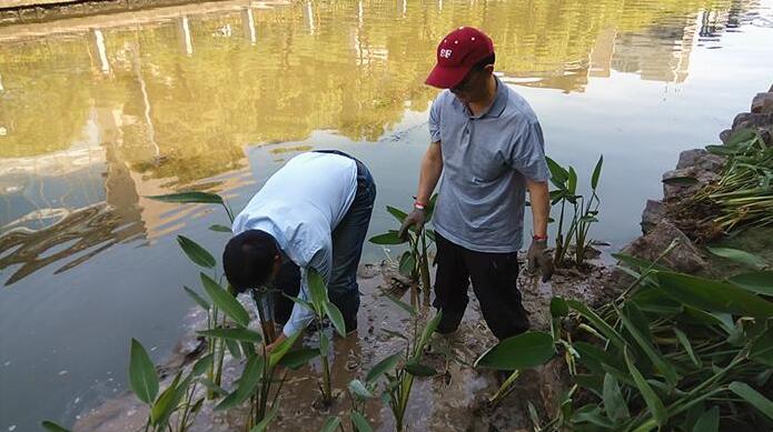 5月27日,位于長(zhǎng)寧區(qū)臨空經(jīng)濟(jì)園區(qū)的聯(lián)涇港迎來(lái)了一批綠色的“來(lái)客”——上百株再力花和金魚(yú)藻。在上海環(huán)保系統(tǒng)工作人員的幫助下,這些具有凈水功能的植物或沉入水底,或栽在河灘上。上海市環(huán)保局的工作人員把再力花栽入河灘治理河道有一定的“套路”,據(jù)長(zhǎng)寧區(qū)建交委副主任陳崗介紹,一般先要斬?cái)嗪拥赖耐庠次廴?,即河?..