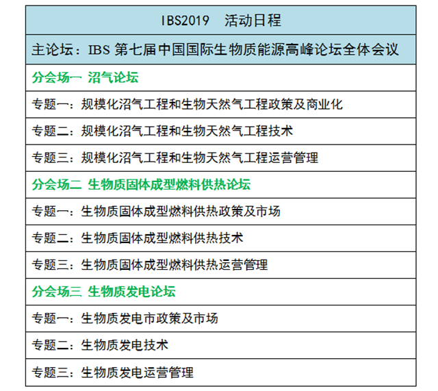 IBS2019將在兩天的會(huì)議中,開(kāi)展生物質(zhì)沼氣論壇、生物質(zhì)發(fā)電、生物質(zhì)固體成型燃料和供熱三大專場(chǎng)。從“沼氣工程和生物天然氣工程政策及商業(yè)化(及沼氣設(shè)備),沼氣工程和生物天然氣工程技術(shù)及工程運(yùn)營(yíng)管理”到“生物質(zhì)原料收儲(chǔ)運(yùn)技術(shù)與裝備、生物質(zhì)發(fā)電市政策及市場(chǎng)、燃煤生物質(zhì)耦合發(fā)電技術(shù)及發(fā)展、生物質(zhì)直燃發(fā)電技術(shù)及設(shè)備應(yīng)用、生物質(zhì)發(fā)電運(yùn)營(yíng)管理、生物質(zhì)電廠的電氣及過(guò)程自動(dòng)化控技術(shù)與裝備”再到“生物質(zhì)固體成型燃料供熱政策及市場(chǎng),生供熱技術(shù)與供熱運(yùn)營(yíng)管理”,精心設(shè)置議題,搭建學(xué)術(shù)企業(yè)共同交流合作的橋梁。
