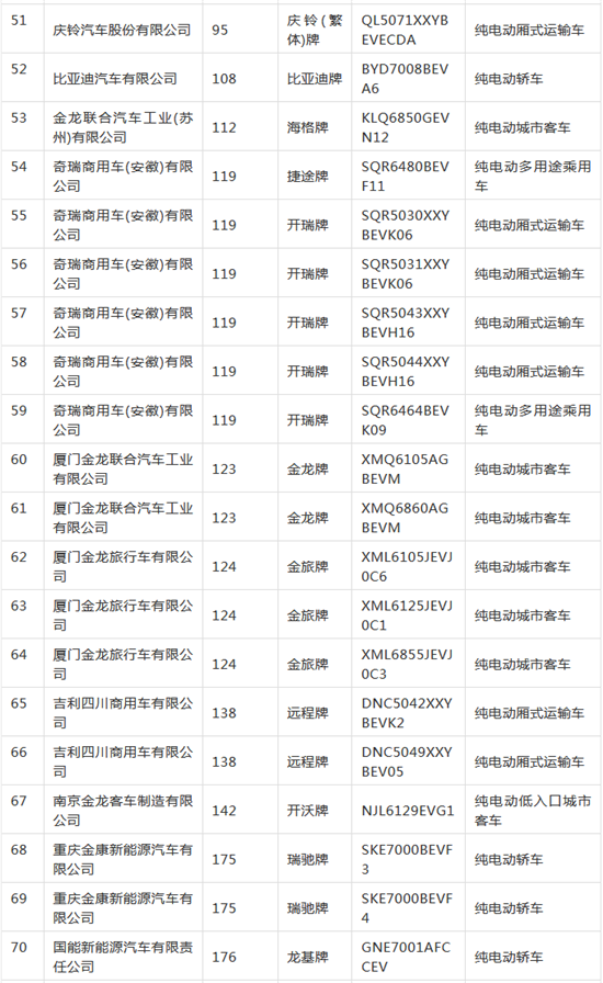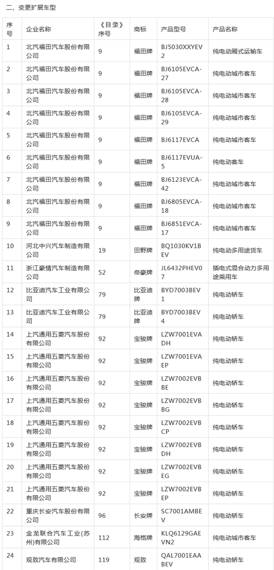 新能源汽車推廣應(yīng)用推薦車型目錄