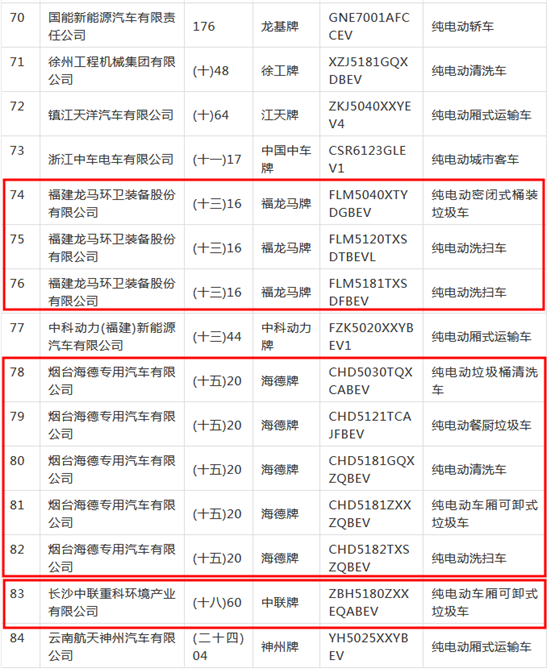 在目錄中,涉及多家環(huán)衛(wèi)裝備企業(yè)的環(huán)衛(wèi)車,如中聯(lián)環(huán)境的純電動(dòng)車廂可卸式垃圾車等,煙臺海德的純電動(dòng)餐廚垃圾車、純電動(dòng)洗掃車等,龍馬環(huán)衛(wèi)的純電動(dòng)洗掃車等,宇通重工的純電動(dòng)洗掃車等。
