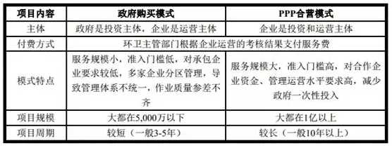 目前環(huán)境衛(wèi)生管理行業(yè)的經營模式主要有兩種:一是政府購買服務模式,二是PPP合營模式。