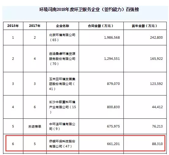 在這幾千家企業(yè)中,僑銀環(huán)保憑借較強實力,在2016年度新簽合同金額中位列全國十強,在2017和2018年分別位列第五和第六名。