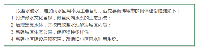 西充縣于今年2月出臺了《西充縣海綿城市建設(shè)計劃》及建設(shè)項目計劃,確定了到2020年達(dá)成目標(biāo):70%的年徑流總量控制率。