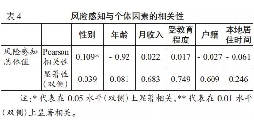 1.個體因素與風(fēng)險(xiǎn)感知的相關(guān)性分析