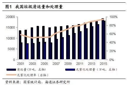 我國56.1%的城鎮(zhèn)化率依然遠低于發(fā)達國家,在新型城鎮(zhèn)化戰(zhàn)略的推進下,預(yù)計未來城鎮(zhèn)人口將保持穩(wěn)步增長,假設(shè)“十三五”期間垃圾清運量每年保持3.27%的增速,垃圾無害化處理率為95%,則“十三五”期間垃圾無害化處理缺口5300萬噸,垃圾處理能力有待進一步提高。