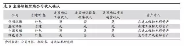 通常而言,對于垃圾焚燒BOT項目,如果公司自建,則會確認工程收入,如果將項目外包,則不確認工程收入。四家公司中,盛運環(huán)保項目主要為自建,并且確認工程收入,而偉明環(huán)保和中國天楹主要采取外包的方式,不確認工程收入。綠色動力有所不同,公司將項目發(fā)包給其他方,但考慮到其對項目負有整體履約責(zé)任并承擔(dān)所有費用和風(fēng)險,在項目建造階段確認相應(yīng)的建造收入,該等建造收入根據(jù)獨立評估師評定的公允價值計量。此外,盛運環(huán)保和中國天楹確認設(shè)備銷售收入,偉明環(huán)保與綠色動力則不確認,四家公司都確認項目運營收入。