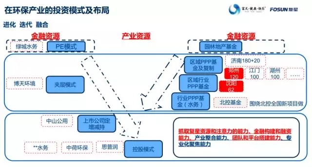 戴海峰在《環(huán)保投資熱下的冷思考》演講中提出:“環(huán)保+”成為當下中國資本市場風口之一,超過500億市值的環(huán)保上市公司已經(jīng)出現(xiàn);“復星集團投的不僅僅是錢,更多的是多資源對接、上下游合作等,從而創(chuàng)造更多的產業(yè)協(xié)同價值?!碧岢鲋挥挟a業(yè)整合,利用大資金、大平臺、強團隊、大生態(tài)才能創(chuàng)造機會和價值。