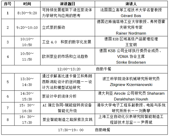 泵業(yè)分論壇日程安排10月17日全天 天惠廳(5層)