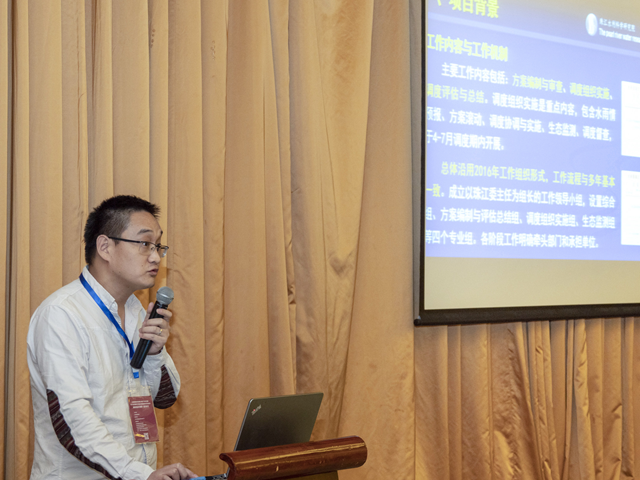 珠江水利委員會(huì)珠江水利科學(xué)研究院水生態(tài)室副主任王建國(guó)作《西江流域魚類繁殖期水量調(diào)度試驗(yàn)研究生態(tài)效果評(píng)估探析》的報(bào)告