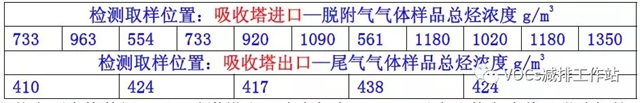 【吸收塔尾氣濃度較高】中石化環(huán)境監(jiān)測(cè)總站、中石化撫順石油研究院對(duì)華北地區(qū)采用貧油作為吸收劑噴淋的一套吸附法油氣回收裝置,進(jìn)行了吸收塔進(jìn)出口油氣濃度采樣檢測(cè)分析,得到如下數(shù)據(jù):
