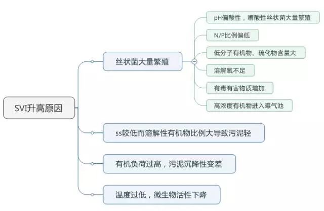 SVI值與污泥負荷有關,污泥負荷過高或過低,活性污泥的代謝性能都會變差,SVI值也會變很高,存在出現(xiàn)污泥膨脹的可能。