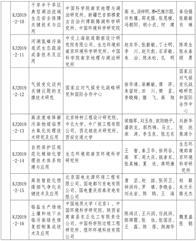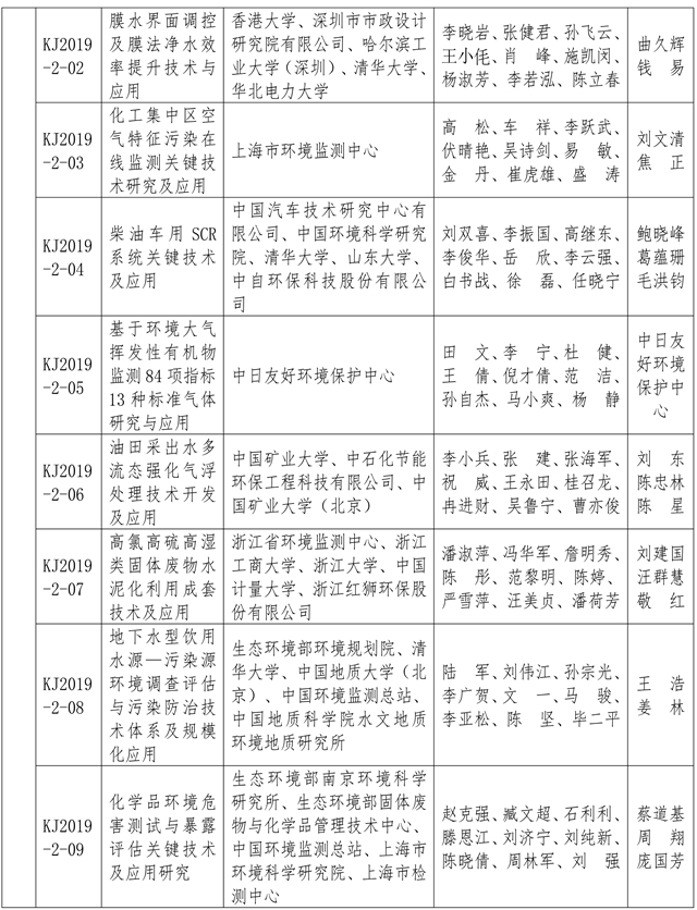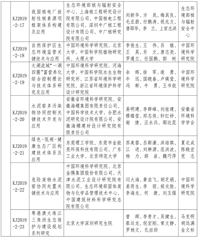 附:2019年度環(huán)境保護科學技術獎獲獎項目名單