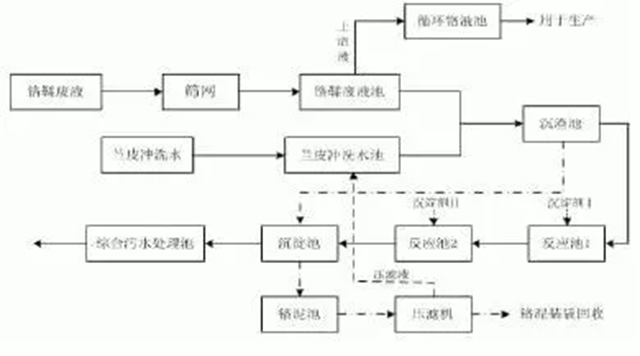 含鉻廢水:指在鉻鞣及鉻復(fù)鞣工序中產(chǎn)生的廢鉻液及相應(yīng)的水洗工序廢水。