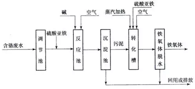 氣浮法:氣浮法用于處理鍍鉻廢水的原理是:在酸性的條件下硫酸亞鐵和六價(jià)鉻進(jìn)行氧化還原反應(yīng),然后在堿性條件下產(chǎn)生絮凝體,在無(wú)數(shù)微細(xì)氣泡作用下使絮凝體浮出水面,使水質(zhì)變清。