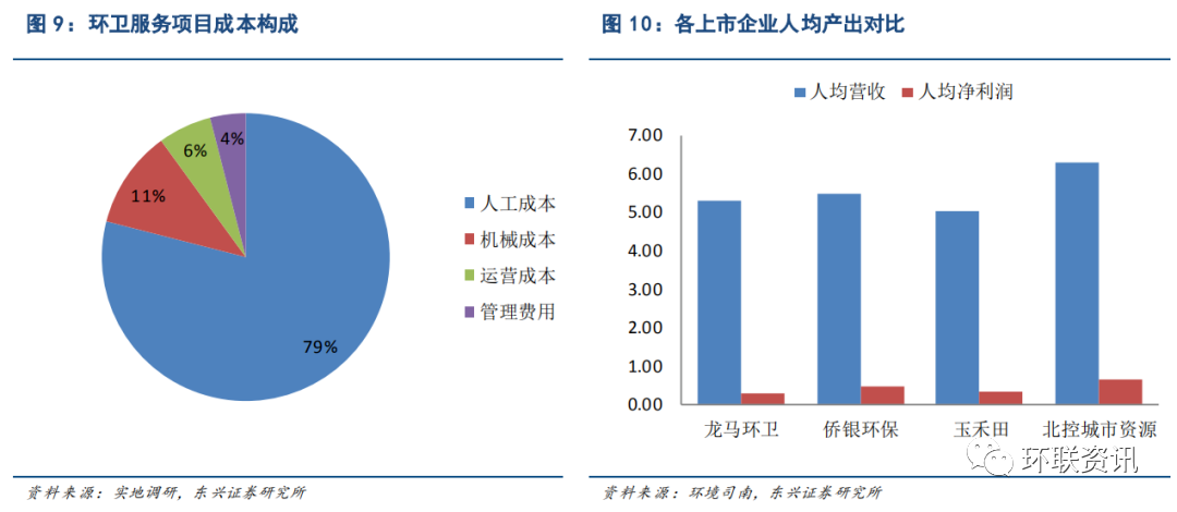 未來行業(yè)的集中度提升的天花板,則取決于遠期環(huán)衛(wèi)龍頭企業(yè)能否通過精細化管理在人均產(chǎn)出上與中小企業(yè)拉開差距,能否在大量人力資本的管理中取得顯著的規(guī)模經(jīng)濟性。