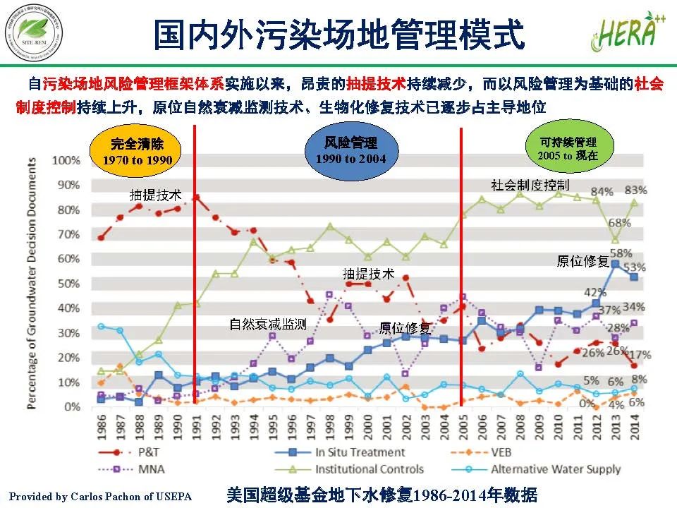 我國自污染場地風(fēng)險管理框架體系實施以來,昂貴的抽提技術(shù)持續(xù)減少,而以風(fēng)險管理為基礎(chǔ)的社會制度控制持續(xù)上升,原位自然衰減監(jiān)測技術(shù),生物化修復(fù)技術(shù)已逐步占主導(dǎo)地位。本文從專家視角綜述了場地土壤與地下水污染風(fēng)險管控技術(shù)。