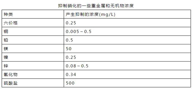 某些重金屬離子、絡合陰離子、氰化物以及一些有機物質會干擾或破壞硝化細菌的正常生理活動。當這些物質在污水中的濃度較高,便會抑制生物硝化的正常運行。例如,當鉛離子大于0.5mg/L、酚大于5.6mg/L、硫脲大于0.076mg/L時,硝化均會受到抑制。有趣的是,當NH3-N濃度大于200mg/L時,也會對硝化過程產生抑制,但城市污水中一般不會有如此高的NH3-N濃度。
