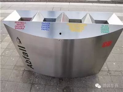 德國非常重視垃圾分類。是出于生態(tài)環(huán)境保護(hù),很多垃圾還有它的再用價值。這已是在德國生活必須知道的常識之一,不僅在住宅、辦公區(qū),就連其它公共場所,例如,火車站或飛機(jī)場都可見分類垃圾箱。