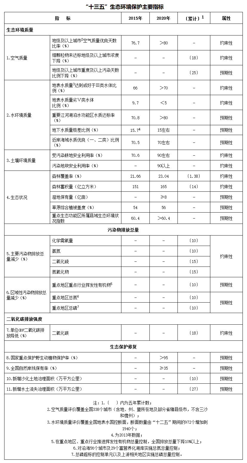 附件:“十三五”生態(tài)環(huán)境保護(hù)主要指標(biāo)