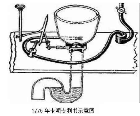 1775年,英國的鐘表師亞歷山大·卡明又對哈林頓馬桶的儲水器進行了改進,使儲水器里的水每次用完后,能自動關(guān)住閥門,還能讓水自動灌滿水箱。他還將抽水馬桶下方的管道設(shè)計成“S”形,既可將排泄物沖走,又在馬桶內(nèi)保持了一定的水位,形成一個密封墊,阻隔了下方管道傳上來的臭味(如下圖)。