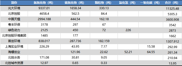 我們根據(jù)10家有披露垃圾處理量和廢氣污染物排放量企業(yè)的數(shù)據(jù),所計(jì)算出的平均焚燒每噸垃圾所排放廢氣污染物如下: