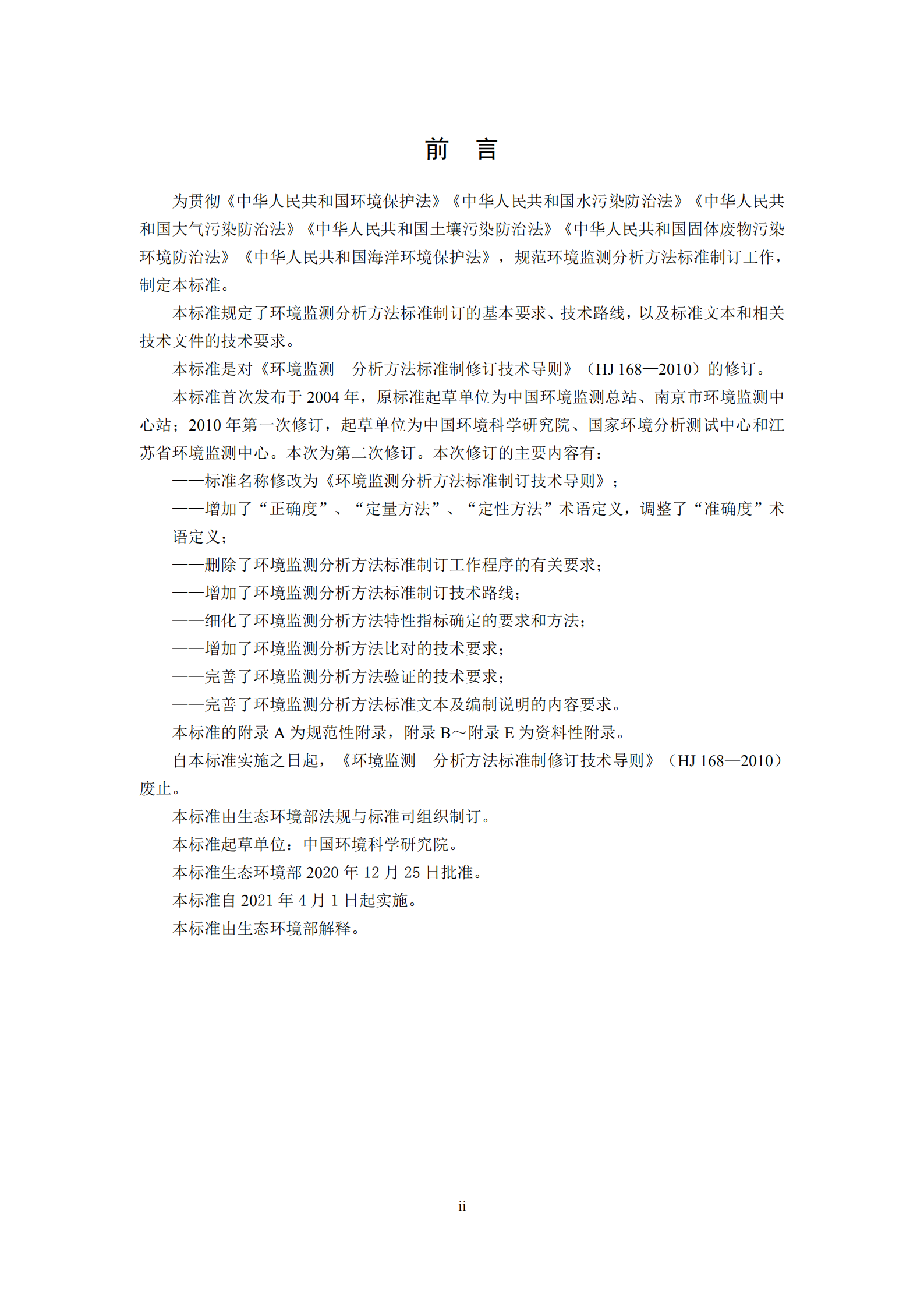 本標準是對《環(huán)境監(jiān)測 分析方法標準制修訂技術(shù)導則》(HJ 168—2010)的修訂。