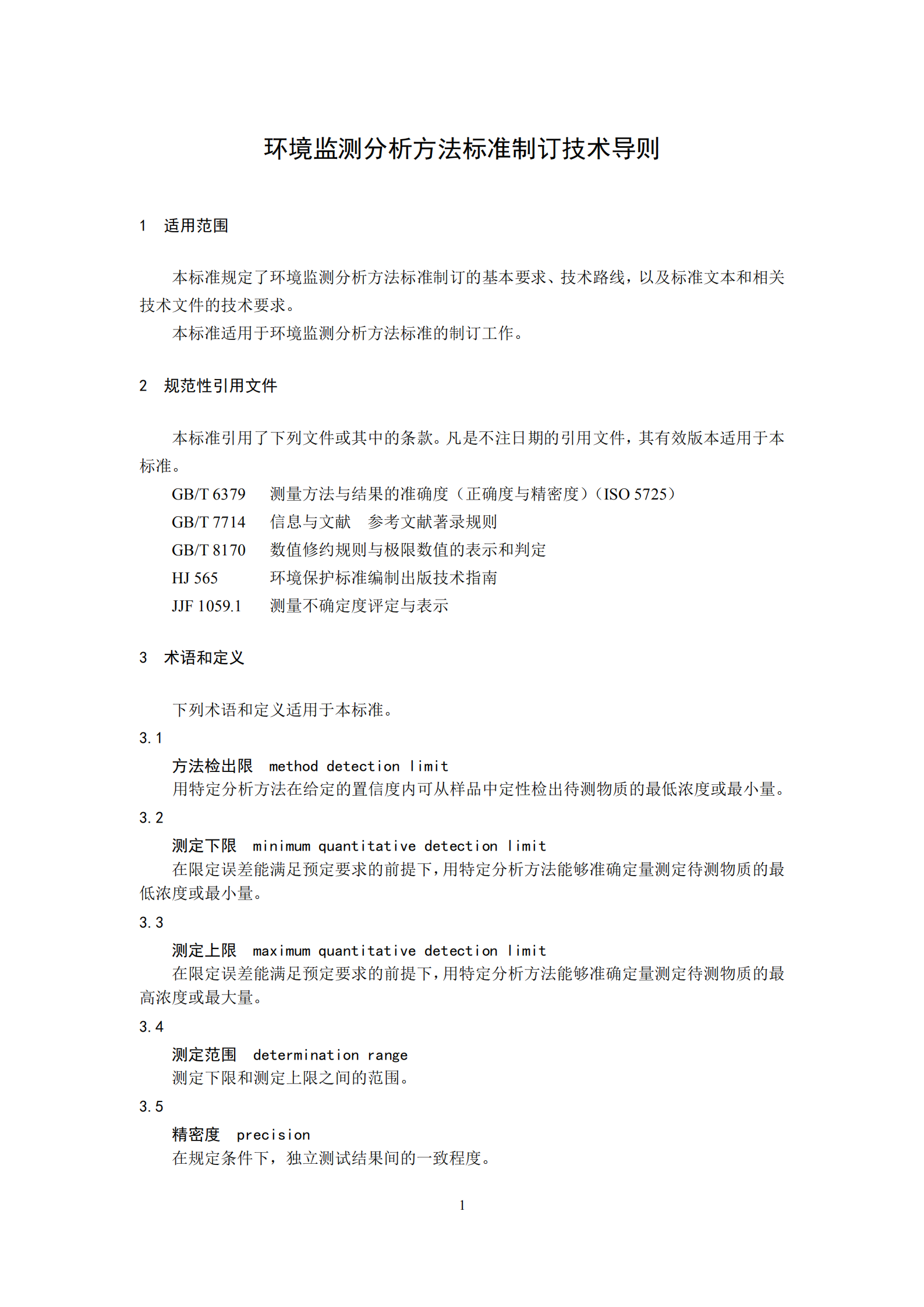 本標準規(guī)定了環(huán)境監(jiān)測分析方法標準制訂的基本要求、技術(shù)路線,以及標準文本和相關(guān) 技術(shù)文件的技術(shù)要求。