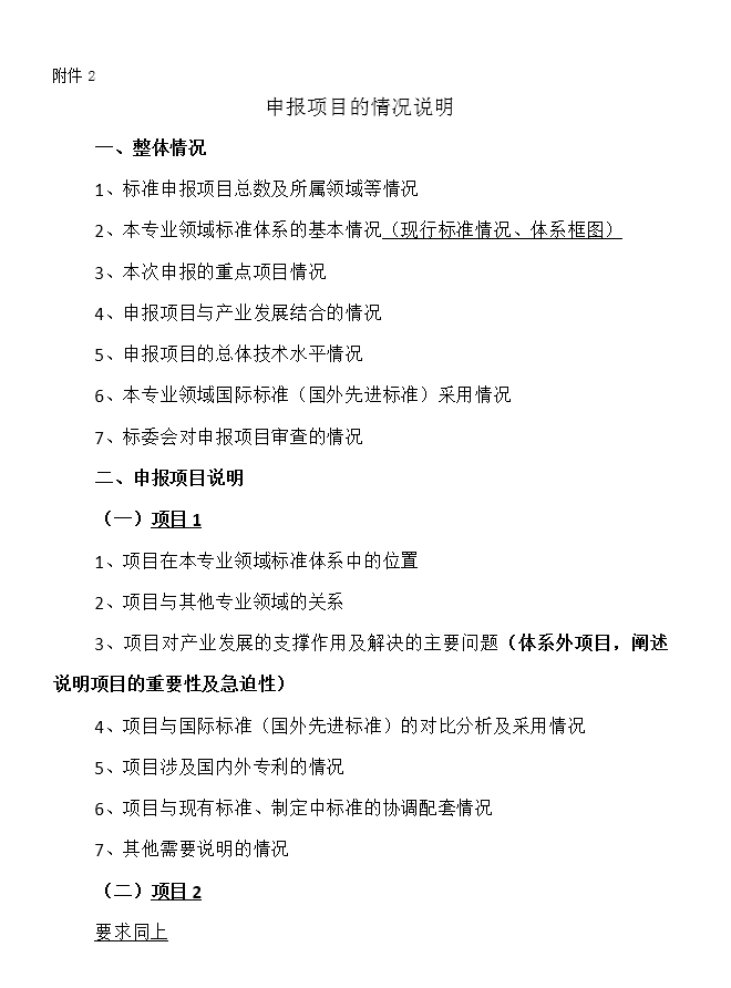 a.申報項(xiàng)目的總體情況說明(一式兩份,附電子版),具體要求見附件2。
