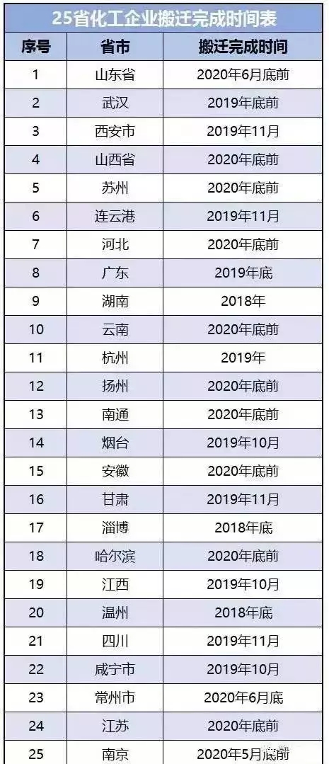 25省市發(fā)布化工企業(yè)搬遷最后時間表