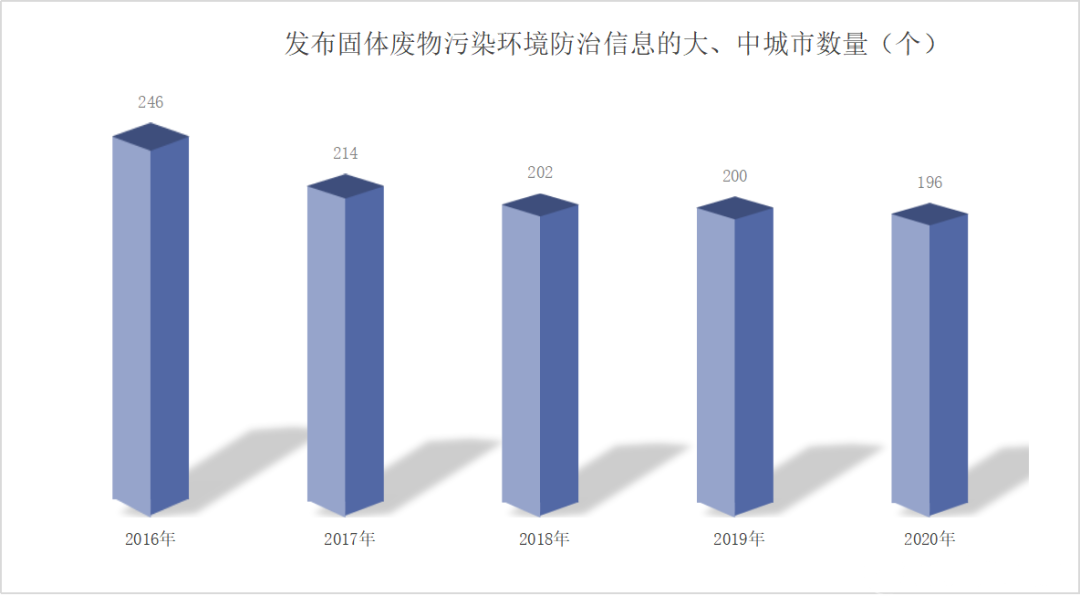 2、固體廢棄物信息化統(tǒng)計(jì)工作已經(jīng)初見成效,近年來200個左右的大、中城市固體廢物處置公報越來越準(zhǔn)確地反應(yīng)出我國固廢污染防治以及固體廢棄物處理處置工作的進(jìn)程。