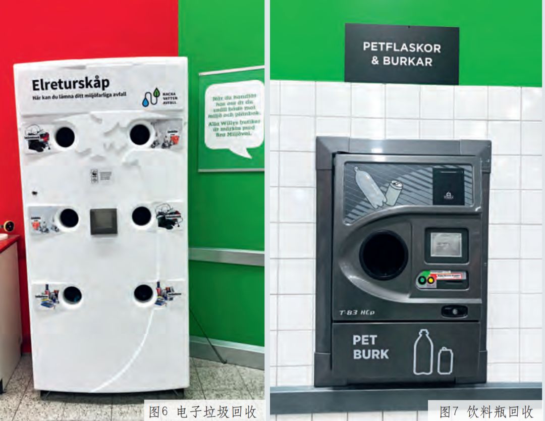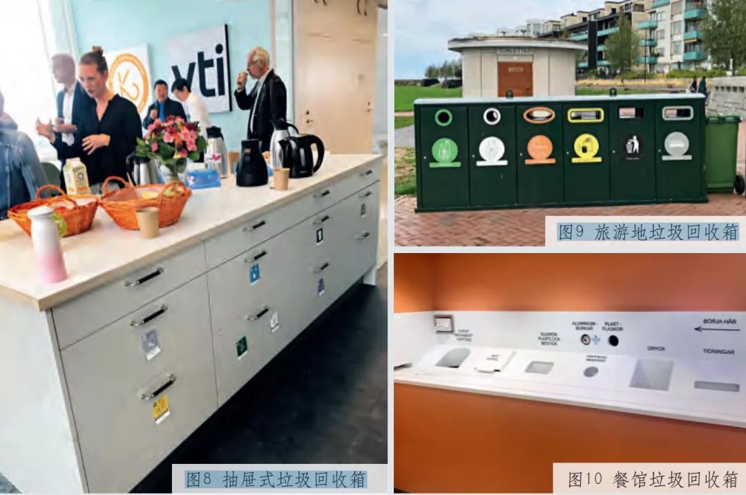 除了分類垃圾箱外,瑞典街道上還設(shè)置了具有壓縮功能的垃圾箱,并在小區(qū)通過以上展示的部分垃圾分類設(shè)施,反映出瑞典人對(duì)垃圾分類嚴(yán)謹(jǐn)認(rèn)真的精神、以人為本的理念、簡(jiǎn)潔適用的設(shè)計(jì)原則。瑞典的垃圾分類設(shè)施不完全由政府配備,單位和機(jī)構(gòu)也可自行設(shè)置,且各具特點(diǎn),已成為城市一景。